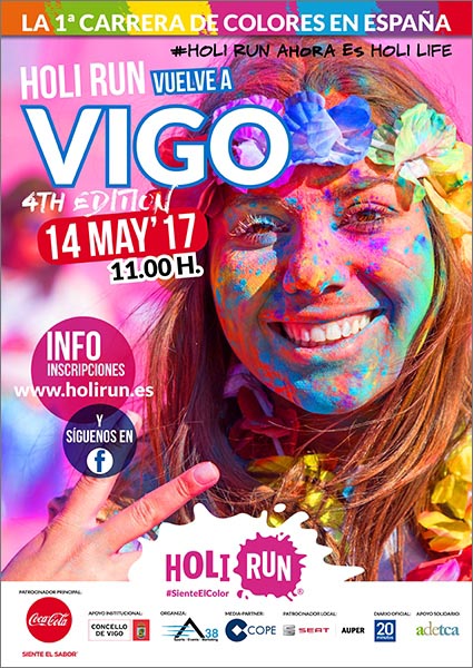 HOLI RUN ESPAÑA. La mayor fiesta de Colores de España, este Domingo en Playa Samil, Vigo a las 11 de la mañana.